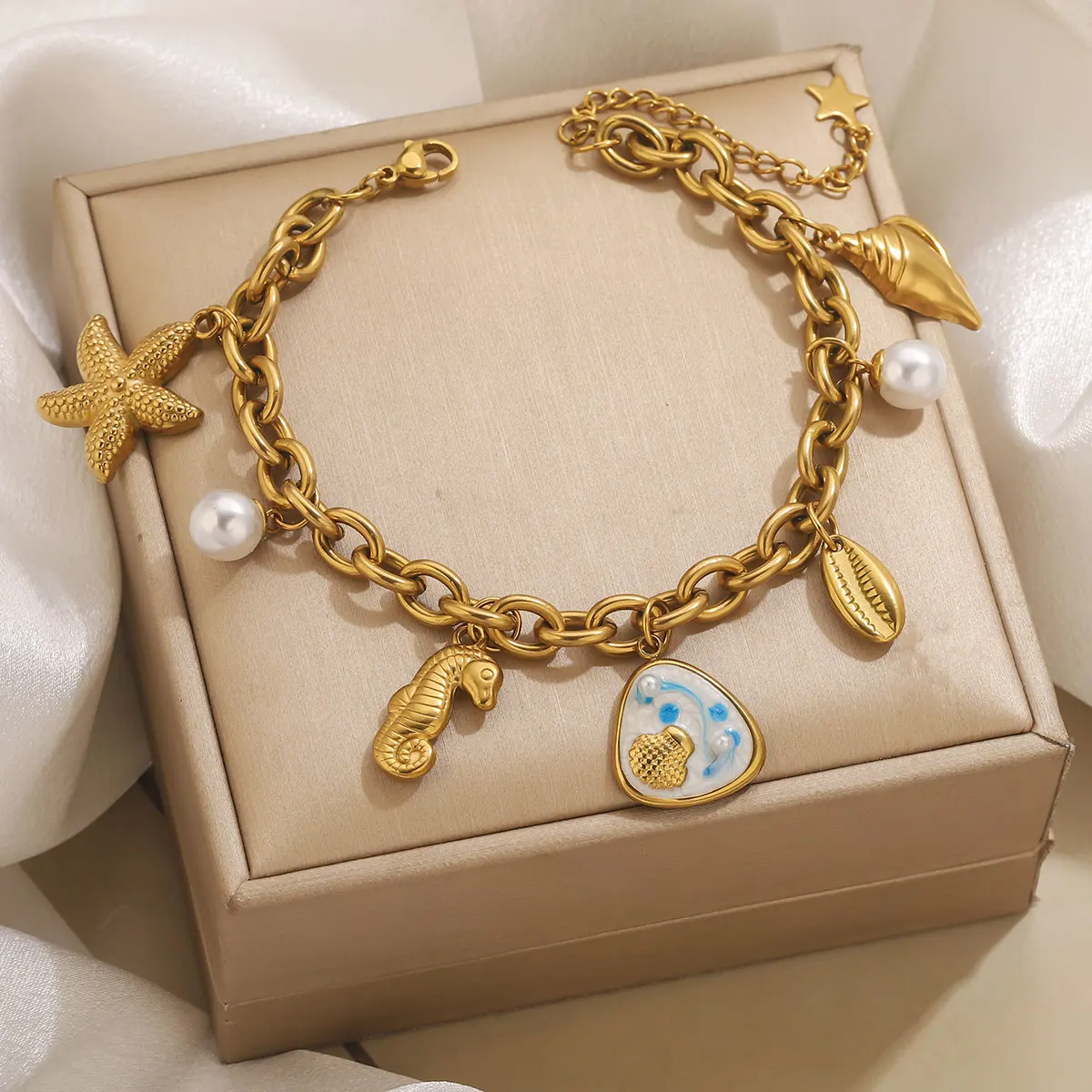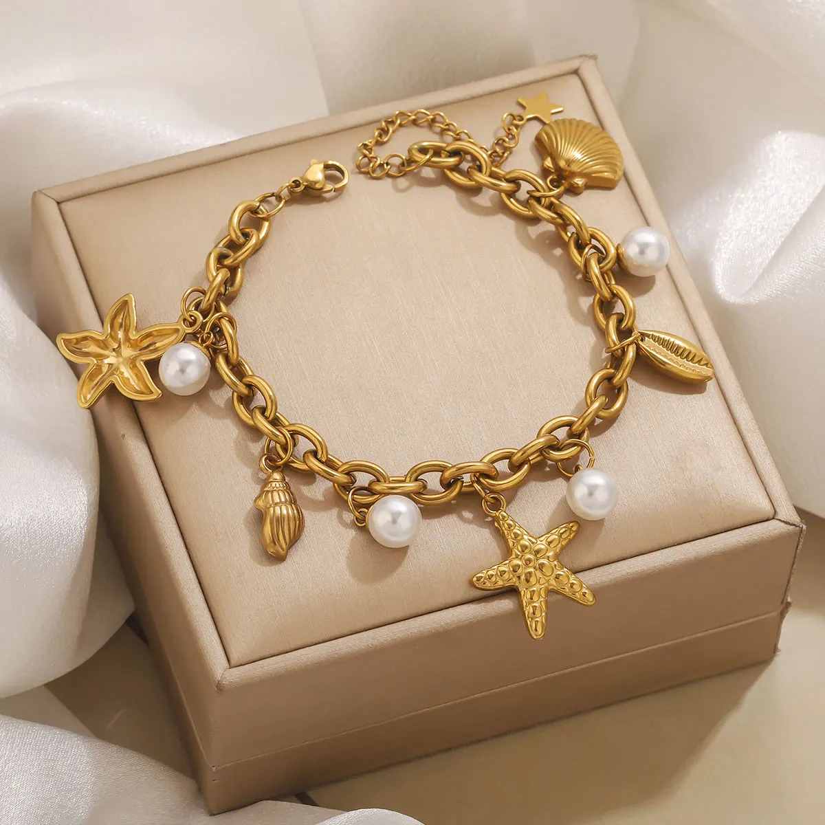Pearl Shell Starfish Pendant 18K Gold Plated Couple Bracelet